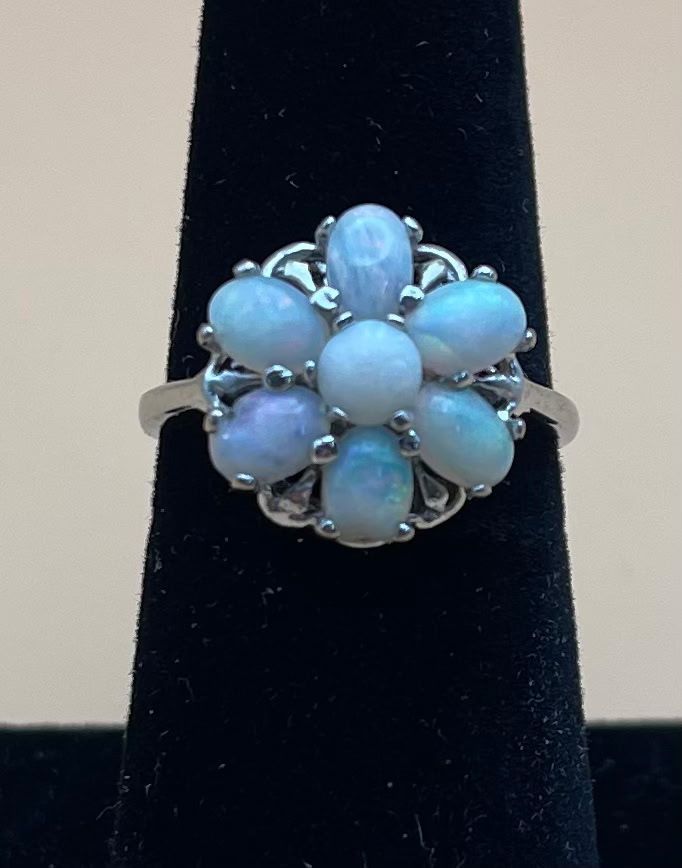 Gold 10kt White Cluster 2.60gms Ring Sz:6.5 w/opal