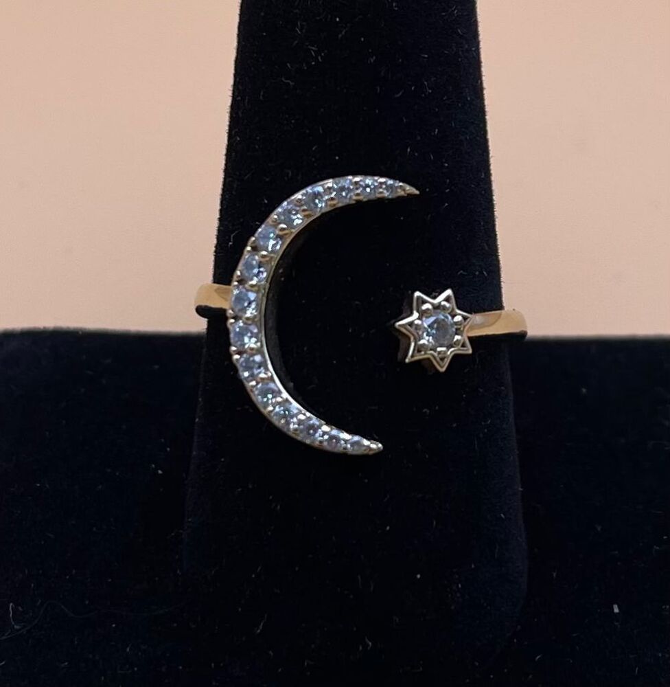 Yellow Gold 14kt Yellow 2.40gms Ring Sz:9.5 14kt gold ring w/ moon and clear cz stones