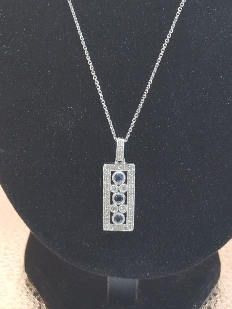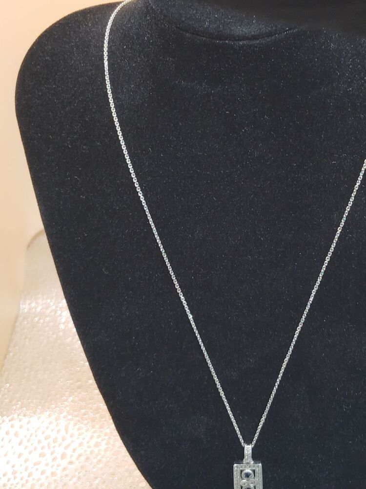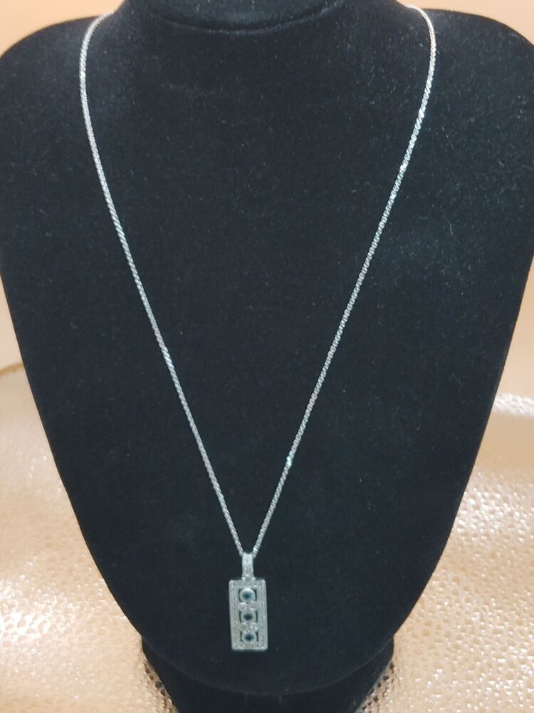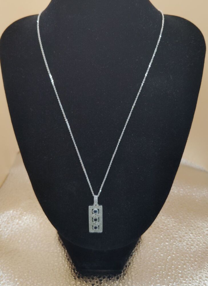 Gold 14kt White Box 5.20gms Necklace Sz:18 w/white gold sapphire diam. pendant 3 Blue Round Non-Diamond 20 Clear Round Diamond