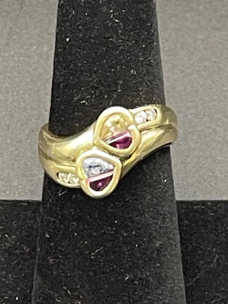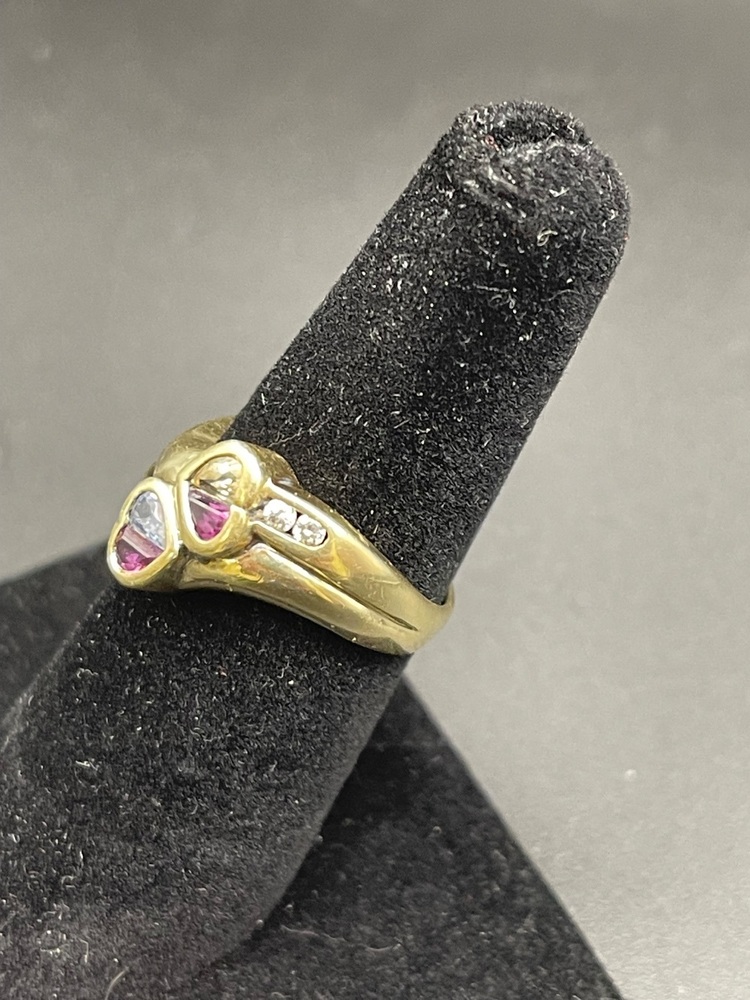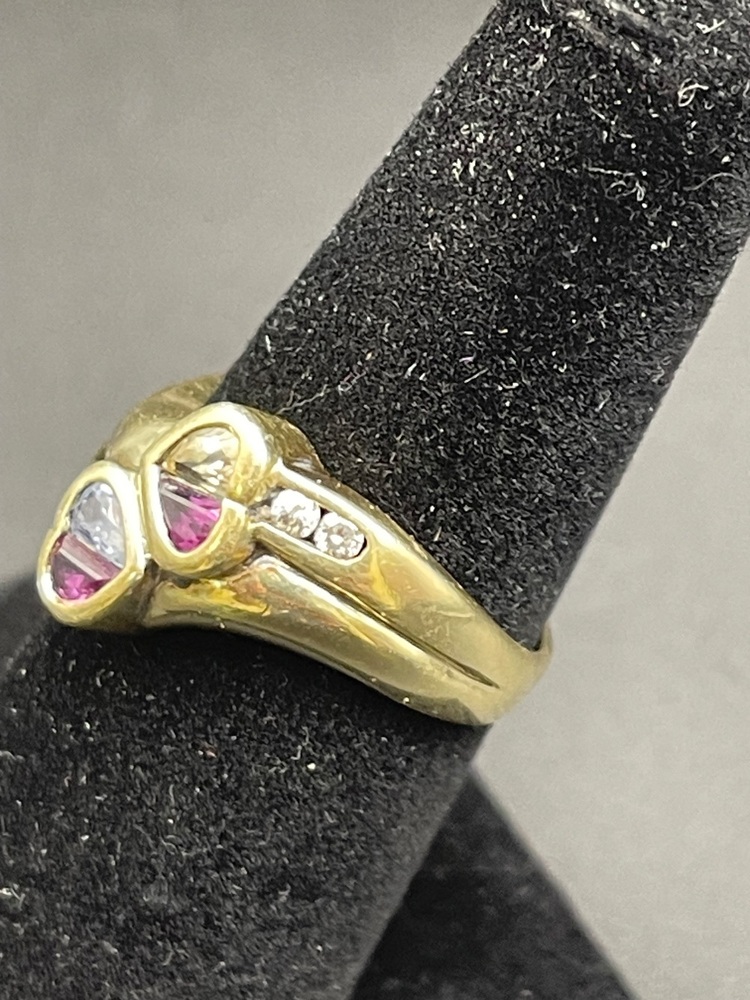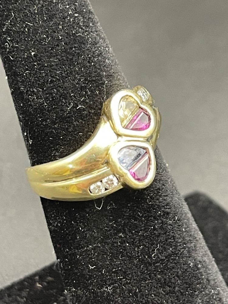 14kt yellow gold ring w/ dia and sapphire stones