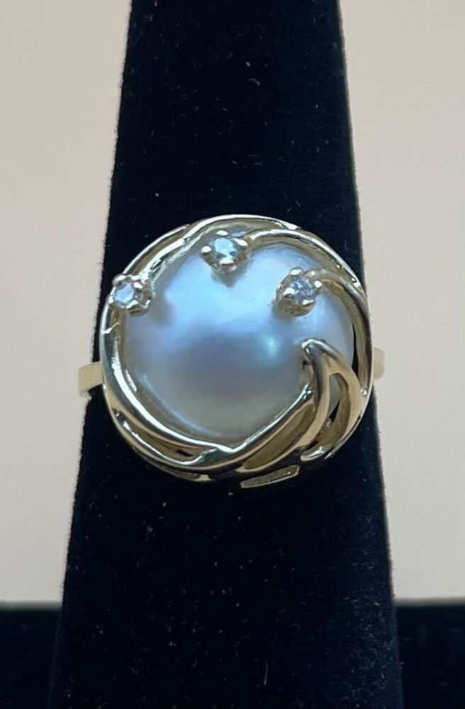 Gold 14kt 4.70gms Ring Sz:6 w/pearl and diamond