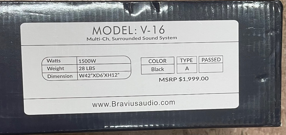 Bravius V-16 Soundbar (MSRP $1999)